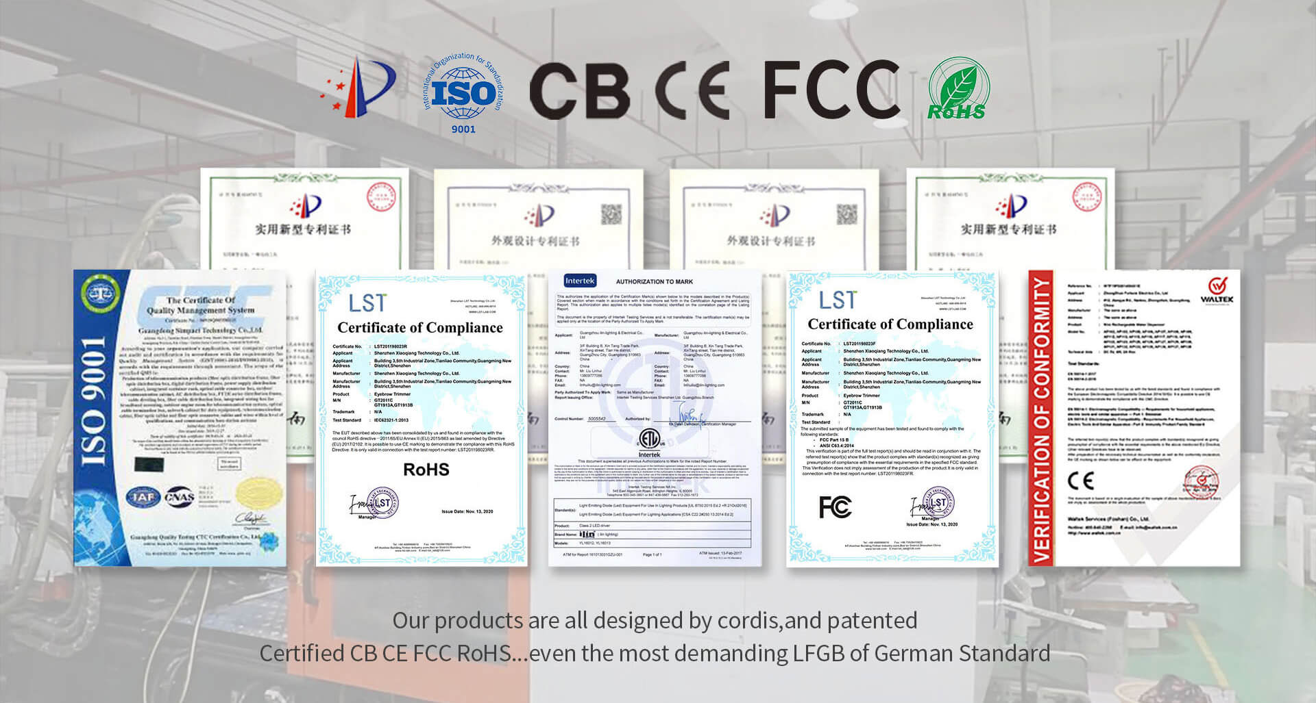 ISO, CE, ROHS, FCC, CB, REACH, PSE.